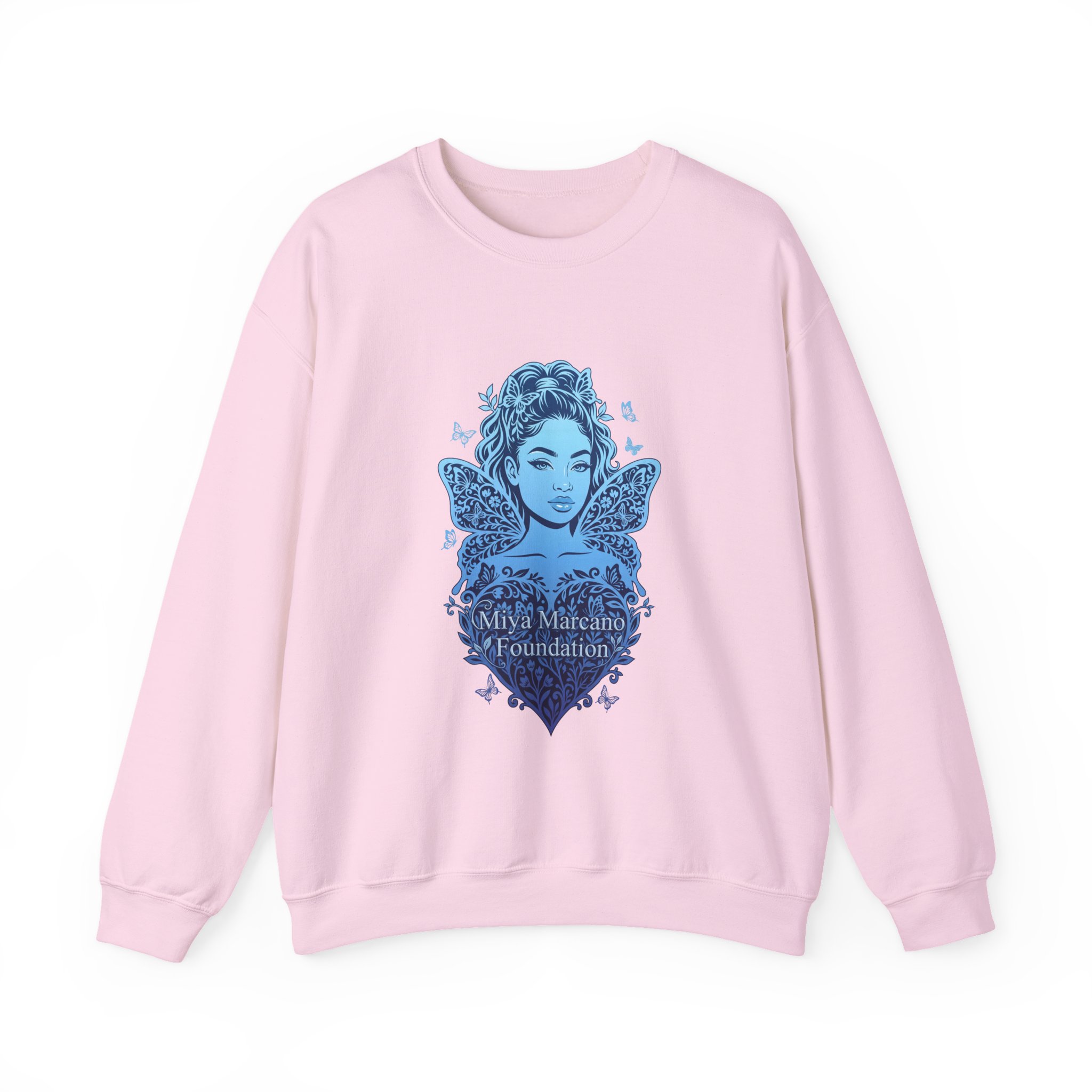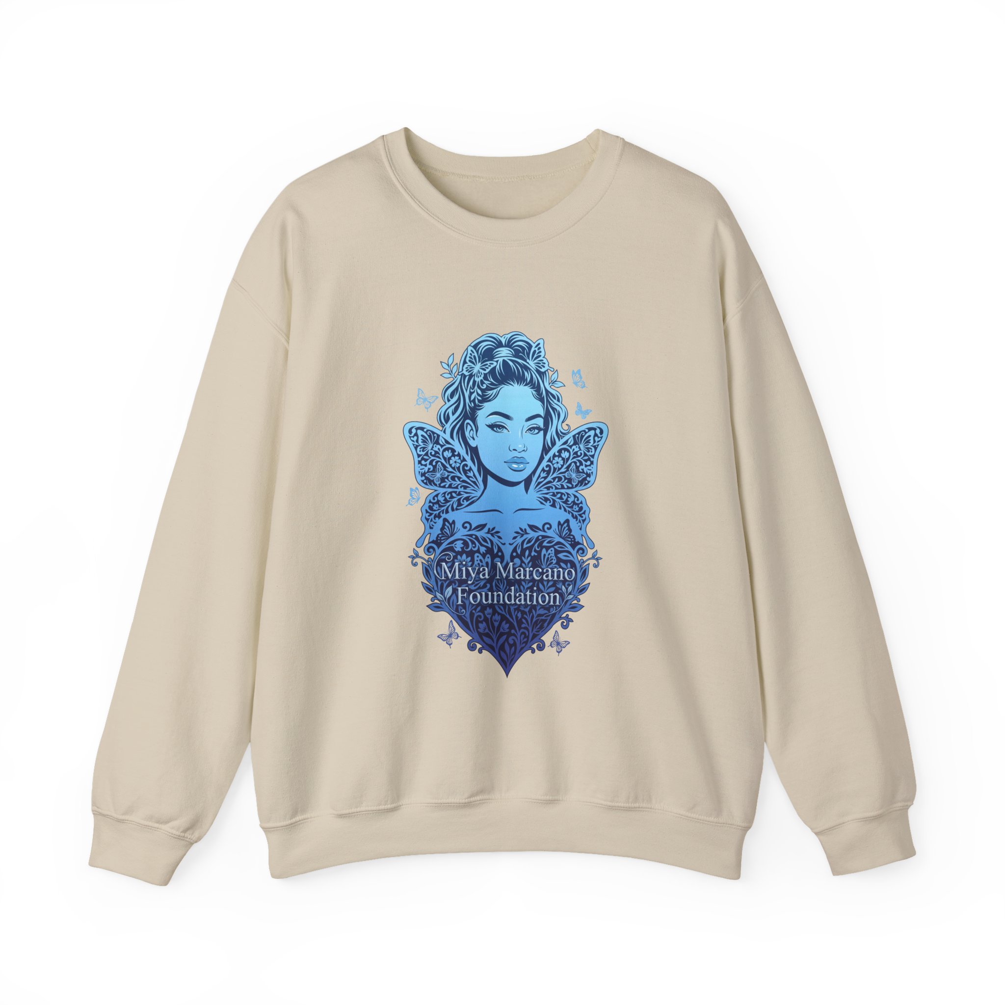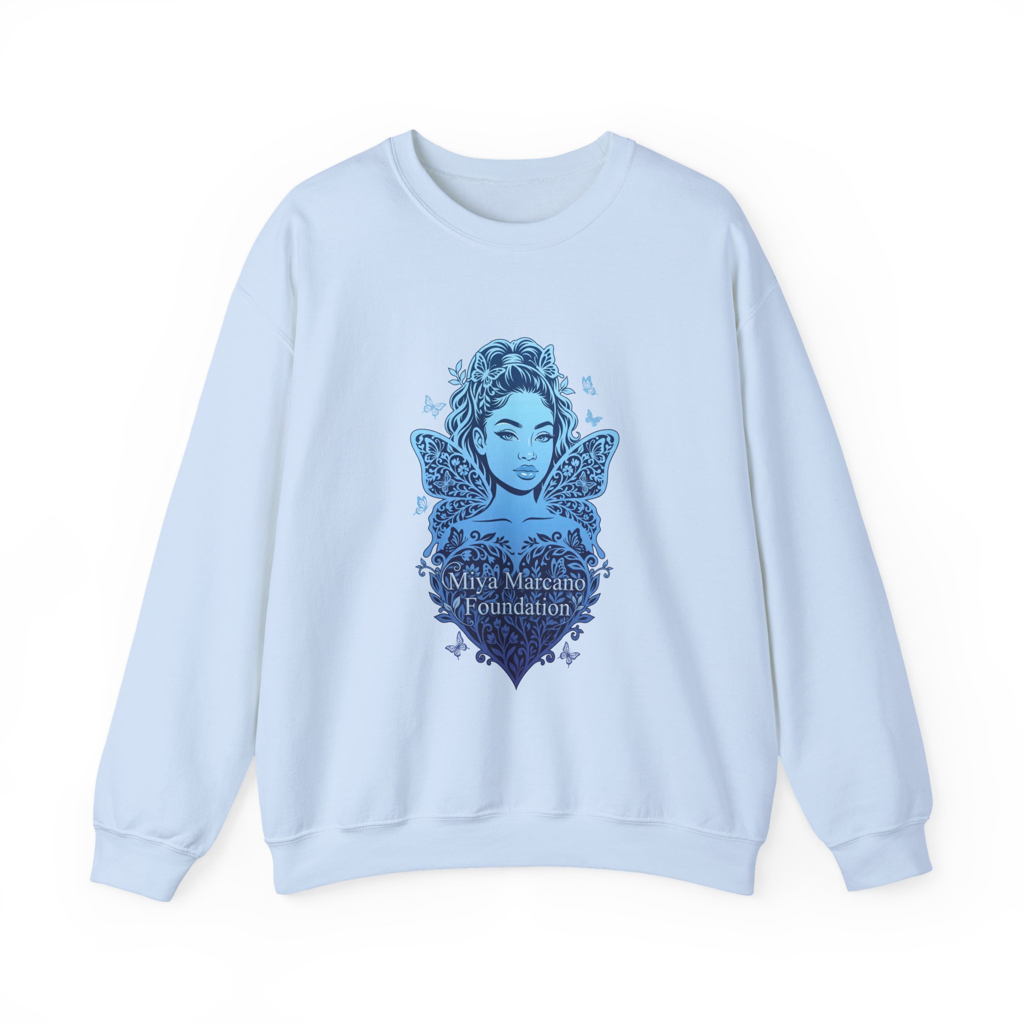Soft, airy, and quietly meaningful — this classic crewneck sweatshirt carries a calm, hopeful energy. The clean white backdrop puts the minimalist blue logo and a flutter of birds front-and-center, creating a subtle statement of care and forward movement. Slip it on for cool mornings, gentle evenings, or whenever you want an easy layer that reads thoughtful without shouting. The roomy, classic fit and slightly weighty knit feel reassuring on the sofa, during volunteer shifts, or out on neighborhood walks. Embroidered or printed accents sit neatly at the chest so the design keeps its refined, comforting presence through repeated wear.