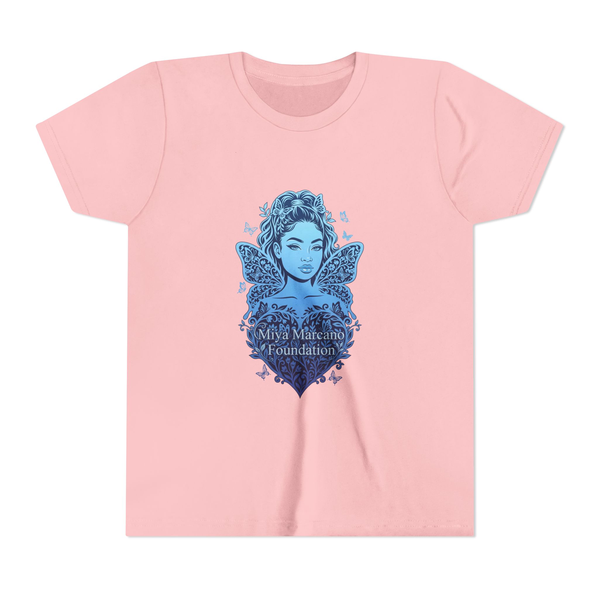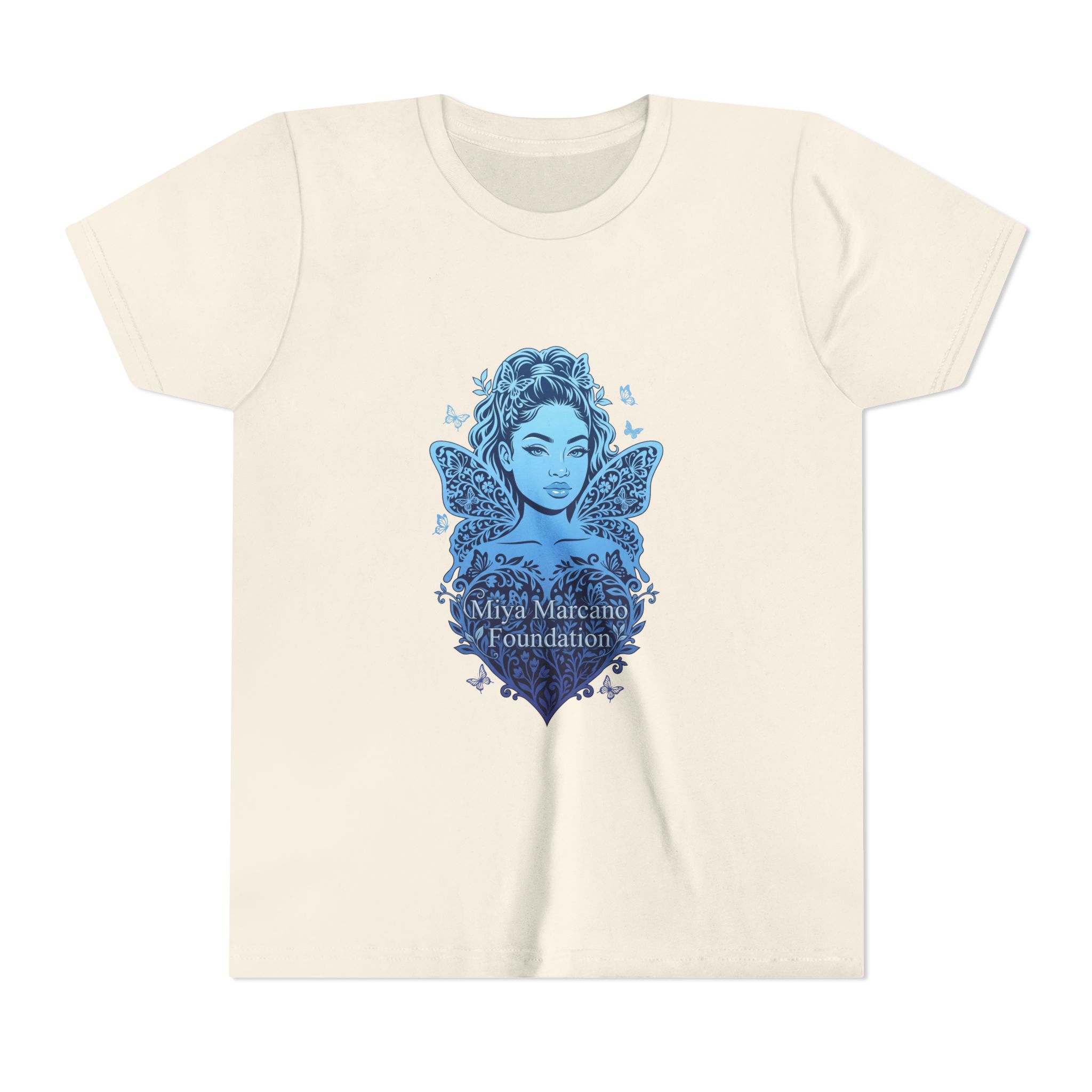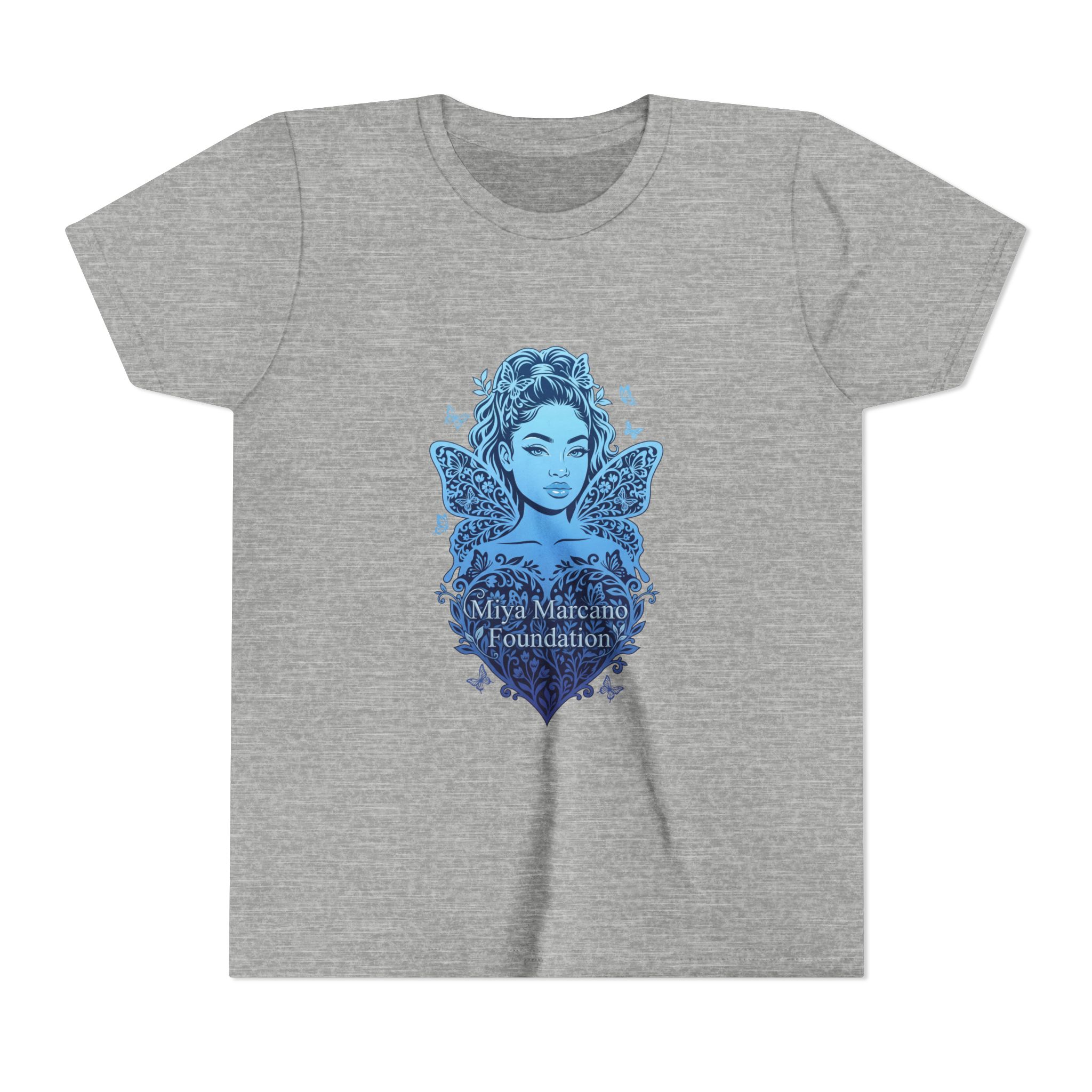 A soft, lightweight youth tee with a gentle blue heart-and-butterfly design that feels like a quiet promise. The slim crew neckline and retail fit give a modern, comfortable silhouette for everyday wear. The artwork—an airy heart cradling a butterfly—reads like a small emblem of care and remembrance on the chest, subtle yet meaningful. This tee slips into days at school, family gatherings, or community events where tenderness matters. Easy to layer under a hoodie or wear alone on warmer days, it keeps movement free and skin happy thanks to its combed, ring-spun cotton feel. For families and supporters who want a wearable way to show connection, this youth tee carries that sentiment without shouting it.