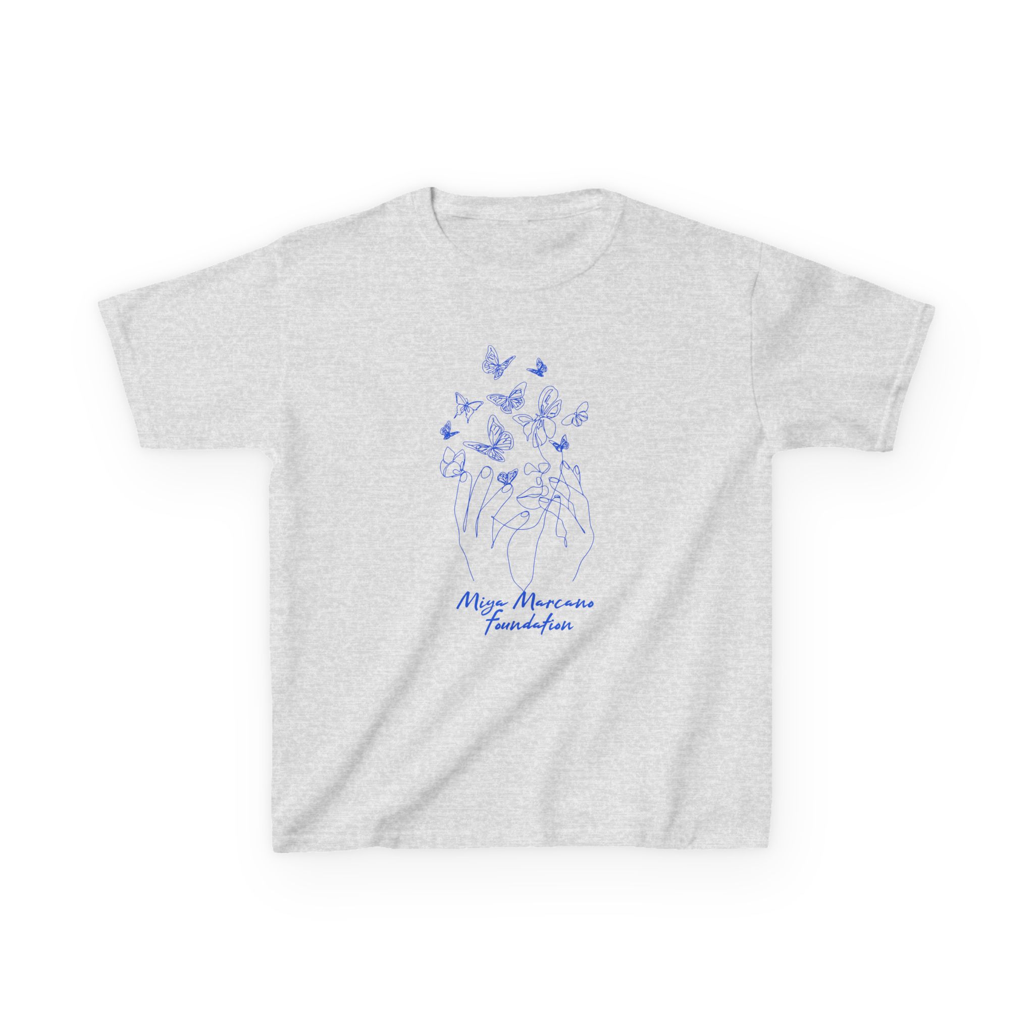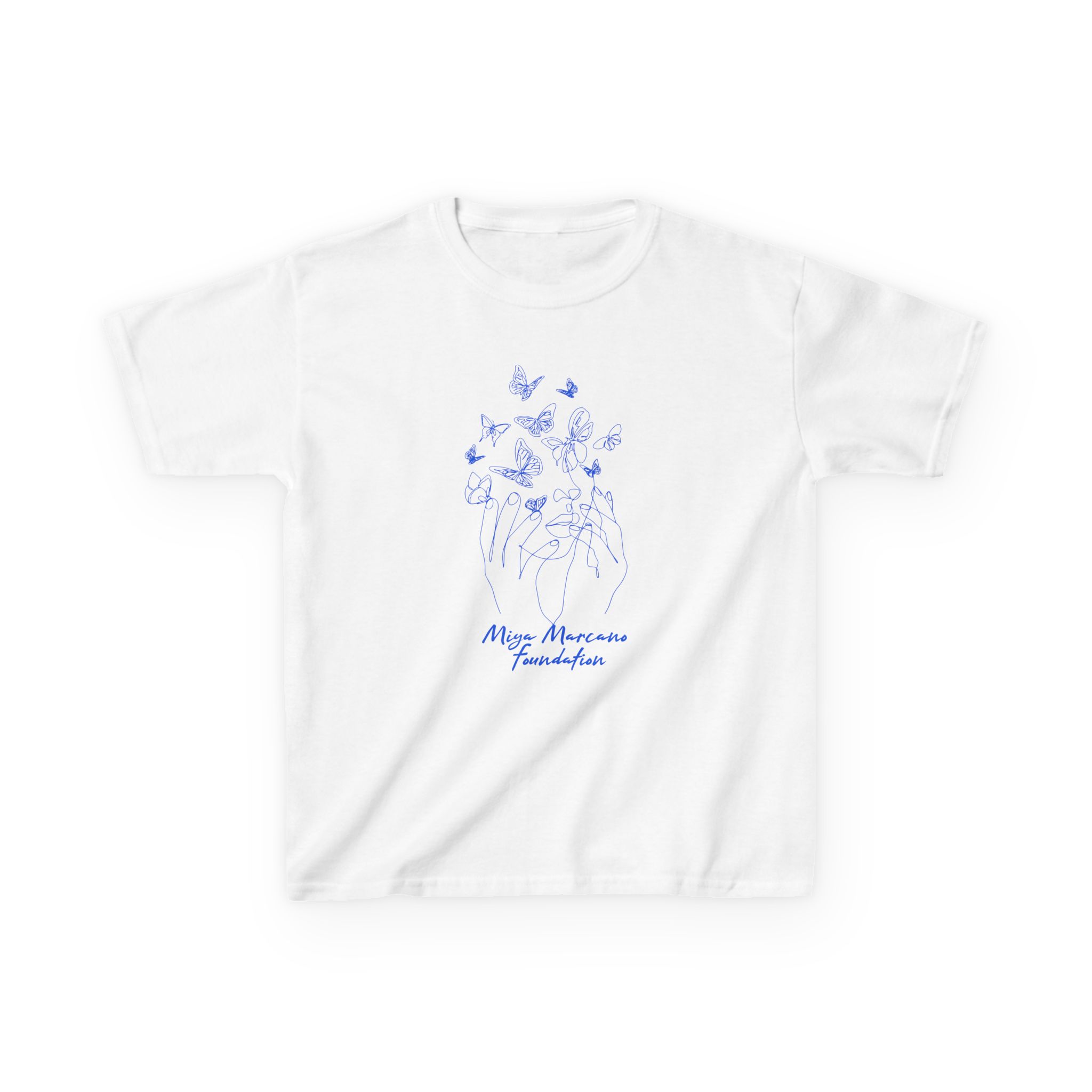This soft, midweight kids tee carries a quietly hopeful message. A simple blue logo with a trail of tiny birds sits over the chest, like a small promise of movement and care. The crew neckline and classic fit make it fuss-free for everyday wear, while the breathable 100% US cotton feels gentle against young skin. It pairs with playtime, school days, and calm afternoons at home — a subtle way for families to show support and connection without shouting. The clean white canvas keeps the design understated and easy to layer under jackets or over long-sleeve shirts when the weather turns.